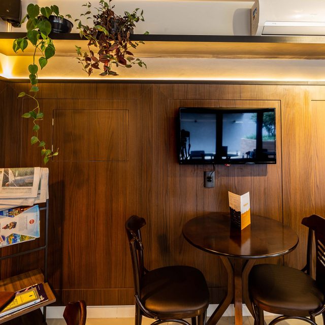 Nosso principal objetivo neste projeto foi abraçar as referências clássicas do cliente sem abrir mão de uma atmosfera despojada, capaz de proporcionar um espaço integrado para trabalho e reuniões na cafeteria.